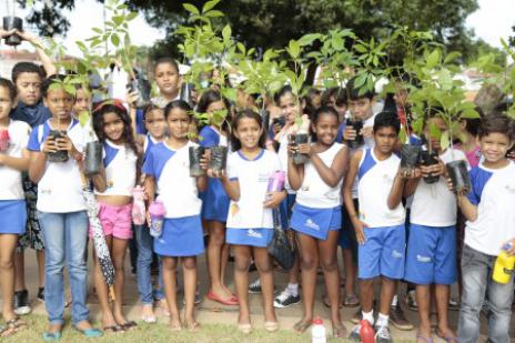 Crianças não disfarçaram a alegria de estar contribuindo com o plantio de árvores, na manhã de hoje, no Parque Cimba. No dia Mundial da Água, 22, estudantes da Rede Municipal e Estadual de Ensino ajudaram a proteger o meio ambiente, visto que reflorestar contribui com o aumento dos recursos hídricos. A ação que acontece durante todo o dia de hoje, no parque, faz parte do Dia D da Campanha de Arborização Plante Sua Árvore, da Prefeitura de Araguaína e parceiros.