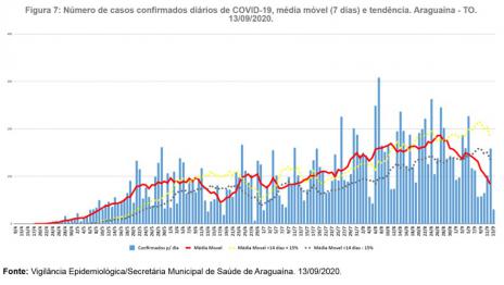 O último Boletim Epidemiológico da Prefeitura de Araguaína indica que a média móvel (média de novos casos dos últimos sete dias) é a menor desde julho. Além disso, é a primeira vez, nos seis meses de pandemia, que o índice aponta desaceleração do contágio por mais de uma semana seguida. Para manter a queda, especialistas alertam para continuidade das medidas preventivas.