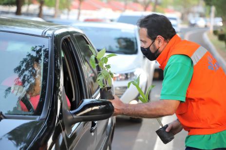 Durante a blitz educativa na Av. Marginal Neblina foram distribuídas mudas de espécies nativas do cerrado