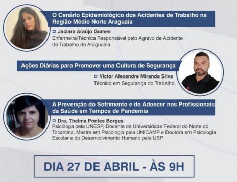 O Cerest (Centro de Referência em Saúde do Trabalhador) Regional de Araguaína promove nesta terça-feira, dia 27, às 9 horas, webconferência para celebrar o Dia Mundial em Memória às Vítimas de Acidentes de Trabalho e Dia Nacional de Prevenção e Segurança no Trabalho, 28 de abril. O evento virtual tem como público-alvo técnicos, gestores e profissionais que atuam na Rede de Atenção à Saúde (RAS), representantes da Comissão Intersetorial de Saúde do Trabalhador (CIST) e Conselho Municipal de Saúde.