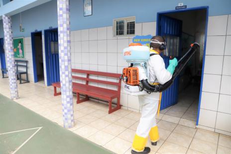 O trabalho faz parte das ações preventivas do protocolo de segurança contra a covid-19 durante retorno gradativo das aulas presenciais