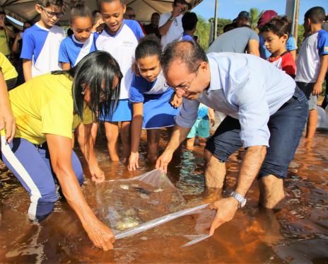 Os alunos da APAE (Associação de Pais, Amigos dos Excepcionais de Araguaína), Escola Joaquim Carlos Sabino e da UMA (Universidade da Maturidade) ajudaram a realizar a soltura dos 10 mil alevinos. “Estou achando maravilhoso estar aqui, mais uma ação que nosso prefeito está conseguindo fazer nesse lago que tem uma representatividade muito grande para nós”, ressaltou a estudante da UMA, Ivete Nascimento.