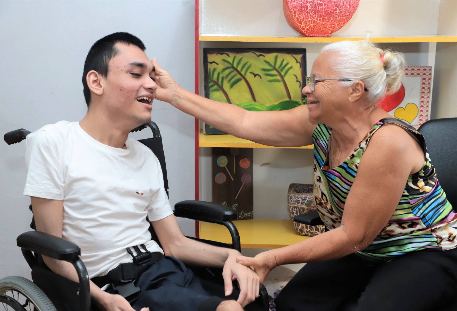 Breno tem 23 anos, é usuário do Centro-Dia e, devido à deficiência, precisa do auxílio de cadeira de rodas para se locomover e dos cuidados especiais ao tomar banho, vestir e alimentar-se. Mesmo aos 73 anos, com problemas e dores na coluna, Creuza lida com essa rotina. “É difícil, mas não me arrependo. Desde que ele chegou, o meu coração mudou, é uma lição de vida muito grande, eu aprendi a me doar mais e aceitar as pessoas como são”, contou.