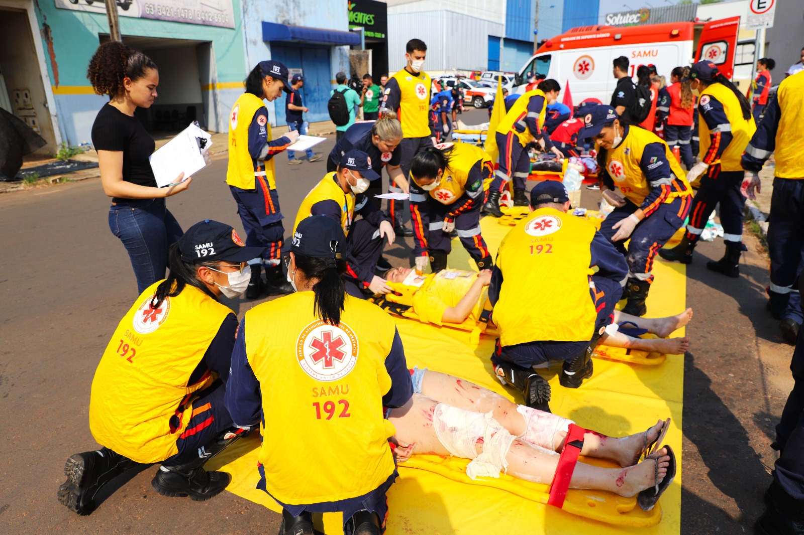 Para representar as 20 vítimas em cena, estudantes dos cursos de Medicina e Enfermagem do Unitpac (Centro Universitário Tocantinense Presidente Antônio Carlos) participaram da simulação e foram os figurantes no acidente. Dentre eles, estava Lyara Almeida, que foi classificada pelo SAMU como uma vítima “verde”, ou seja, teve ferimentos superficiais e conseguiu andar em direção aos socorristas.
