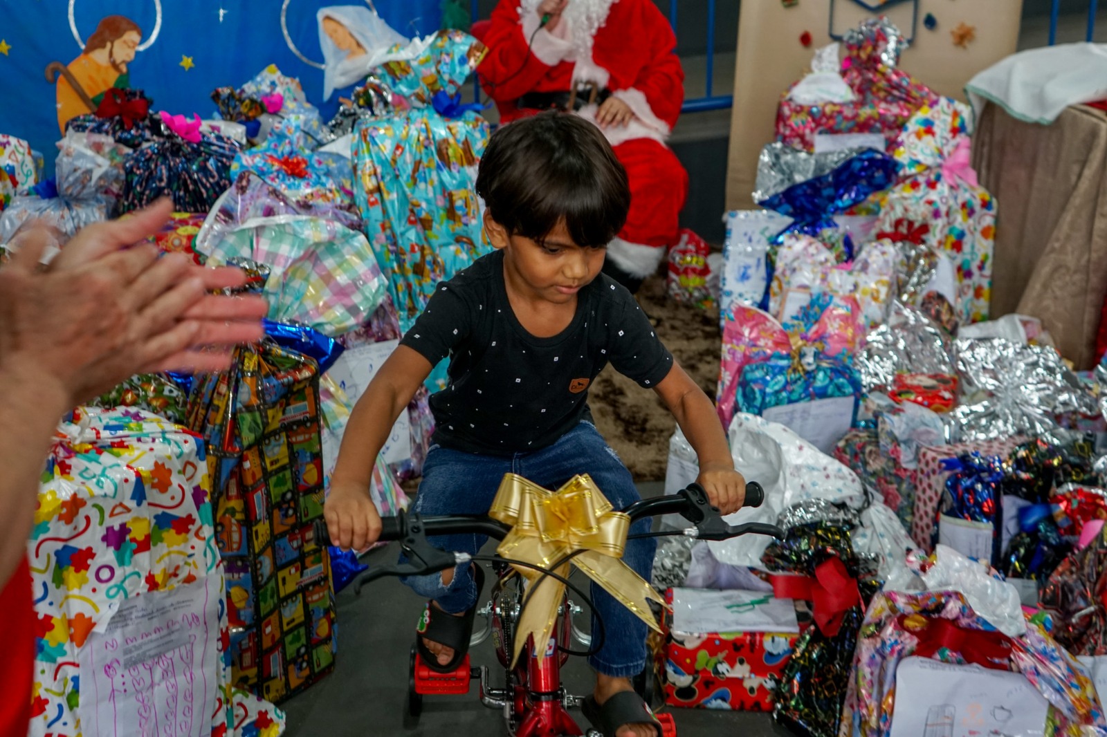 Dom Miguel Barbosa, de 4 anos, expressou sua alegria ao receber o presente, "Eu tô muito feliz porque ganhei uma bicicleta! Era o meu sonho de Natal e agora eu posso brincar com meus amigos", disse o menino.
