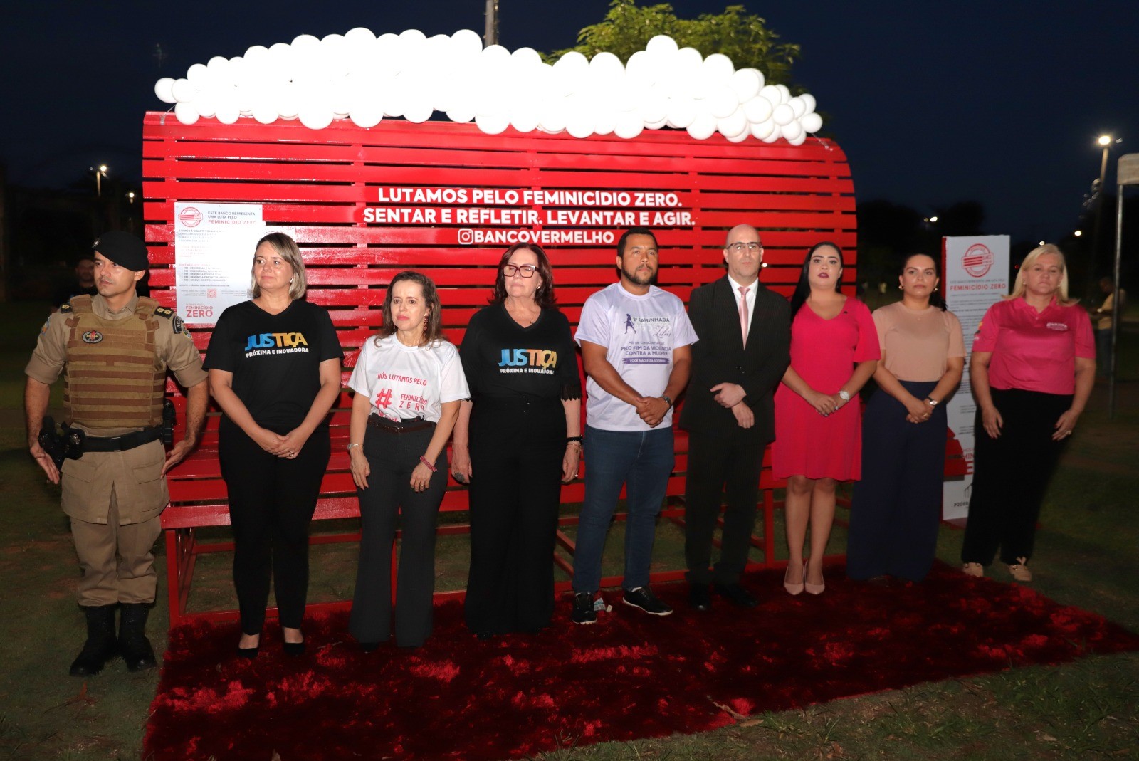 A Prefeitura de Araguaína inaugurou um novo monumento símbolo da campanha de resistência e conscientização na luta contra o feminicídio e a violência contra a mulher. O Banco Vermelho foi instalado no Parque Cimba, um dos principais cartões postais de Araguaína, em uma cerimônia que contou com a presença da primeira-dama do Município, Ana Paula Lopes, da secretária Especial da Mulher de Araguaína, Ângela Maria Silva, autoridades do Poder Judiciário, Ministério Público, Defensoria Pública, Ordem dos Advogados do Brasil, Guarda Municipal de Araguaína e Polícia Militar.